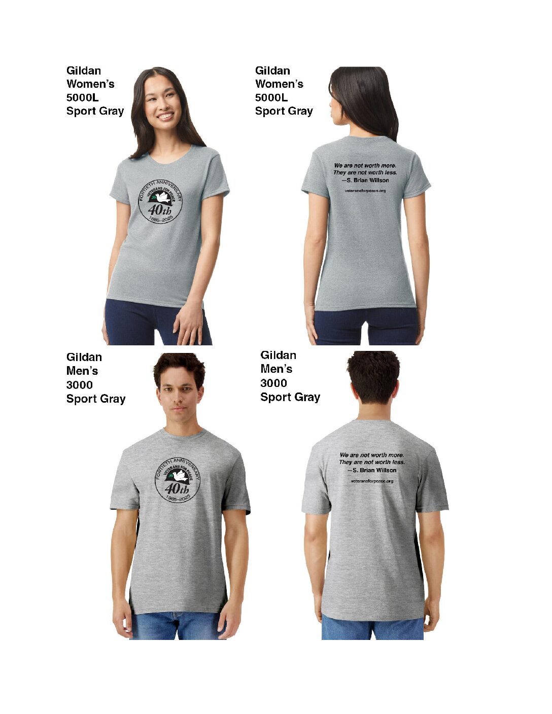 Celebrate VFP’s 40th Anniversary by wearing our Limited Edition 40th Anniversary T-shirts. These make a significant and great addition to your VFP collection of T-shirts! The front of the T-shirt has our “Fortieth Anniversary 1985-2025” logo. The back is printed with: We are not worth more. They are not worth less. – S. Brian Willson